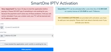3. aplikacja SmartOne IPTV nie jest darmowa aplikacja i po uplywie 14 dni od instalacji wymagana jest jest aktwacja (2,50 euro za rok) TUTAJ (dostęp do GoldTV nalezy oplacic osobno)